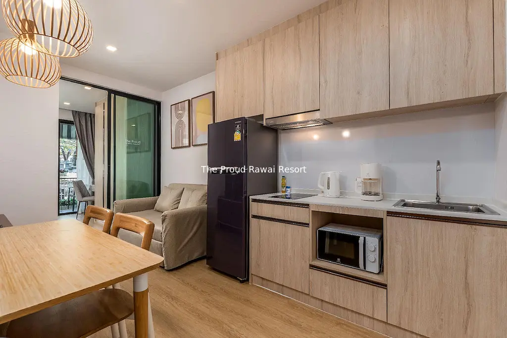 The Proud Rawai Condominium is a small apartment complex with a limited number of apartments, providing a high level of privacy and tranquility. The architecture is made in a modern tropical style with an emphasis on bright spaces, panoramic windows and functional layouts. The apartments are fully furnished and equipped with everything necessary for a comfortable stay, including kitchen areas, cozy living rooms and balconies with sea or mountain views.